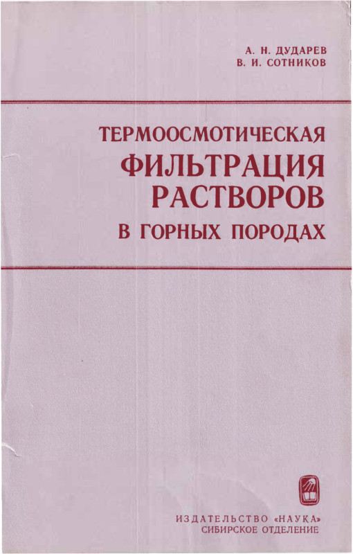 Дударев А. Н., Сотников В. И. Термоосмотическая фильтрация раст воров в горных породах (в связи с проблемами рудообразования). Новосибирск: Наука, 1982.
