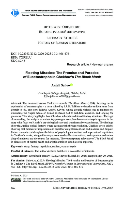Статья: Мимолетные чудеса: обещание и парадокс эвкатастрофы в «Черном монахе» А. П. Чехова