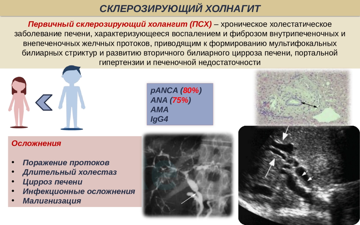Клинический случай первичного склерозирующего холингита, который было затруднительно верифицировать ввиду отсутствия подтверждающих антител, при этом были другие антитела, которые косвенно указывали на наличие первичного билиарного холангита.