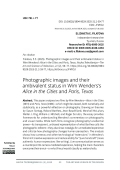 ФОТОГРАФИЧЕСКИЕ ОБРАЗЫ И ИХ ДВОЙСТВЕННЫЙ СТАТУС В КНИГЕ ВИМА ВЕНДЕРСА "АЛИСА В ГОРОДАХ" И "ПАРИЖ, ТЕХАС". (2025)