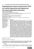 Актуальность представленного исследования определяется тем, что в современных условиях постиндустриальной эпохи существенные изменения претерпела практика менеджмента, требующая адекватного модельного описания. Целью представленной работы является модельное описание развития современного менеджмента, отвечающего реалиям управления социально-экономическими системами в постиндустриальную эпоху. Научная новизна полученных результатов заключается в том, что на основе исследования сущности и содержания моделей поколений М1.0, М2.0 и М3.0, сформированных в XX веке, в результате выявления значимых признаков обоснована модель менеджмента М4.0, адекватно отражающая процессы управления в современных условиях постиндустриального развития как минимум в трех направлениях: цели деятельности в рыночной среде; характер принятия управленческих решений; развитие организационных структур. Показано, что в части целей деятельности в рыночной среде в модели М4.0 необходимо не только продолжение конкурентной борьбы компании на уже существующих рынках, но и с создание сегментов новых, ранее не существовавших рынков, при возрастающем рыночном спросе. В части принятия управленческих решений в модели М4.0 делается акцент на заинтересованность компаний в поиске, удержании и развитии талантливых сотрудников, способных принимать управленческие решения в возникающих нестандартных ситуациях развития, когда автоматизированные системы не способны вырабатывать управленческие решения. В части развития организационных структур в модели М4.0 рассматривается комбинация холакратического менеджмента для сегментов новых рынков при сохранении общей централизация управления основными ресурсами. Практическая значимость полученных результатов заключается в возможности их использования для дальнейшего описания моделей развития менеджмента, отражающих реалии развития экономики в постиндустриальную эпоху.
