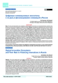 Цель. В статье рассматривается роль цифровых инновационных экосистем как ключевого фактора в развитии современной системы финансирования инноваций в России. Методы. Исследование проводилось при помощи анализа источников литературы и сравнительного анализа. Результаты. Авторами проведен комплексный анализ международного и отечественного опыта создания и функционирования инновационных кластеров типа «кремниевых долин», а также исследованы современные цифровые платформы для эффективного взаимодействия инвесторов и инновационных проектов. На основе системного подхода выявлены особенности и ограничения существующих инструментов финансирования инноваций, обоснована необходимость внедрения альтернативных механизмов привлечения частного капитала в инновационную сферу. Предложены практические рекомендации по развитию российских цифровых инновационных экосистем. Научная новизна. В исследовании применен комплексный подход к изучению роли цифровых инновационных экосистем в финансировании инноваций в России, включая использование опыта международных «инновационных долин» и современных цифровых платформ для привлечения инвестиций. Практическая значимость. Представленные результаты могут быть использованы при разработке государственной политики в области инновационного развития и цифровой трансформации экономики.