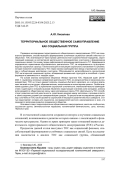 Проведено исследование территориального общественного самоуправления (ТОС) как социального феномена, способствующего формированию устойчивых социальных связей в местных сообществах. ТОС анализируется через призму деятельностной социологической парадигмы, акцентирующей внимание на коллективной деятельности, взаимодействии участников и формировании социальных связей. На основе теории рефлексивной организации деятельности Г. П. Щедровицкого определяется нормативная обусловленность деятельности ТОС, ее направленность на воспроизводство социальных структур. Также используется концепция социального становления П. Штомпки, которая позволяет анализировать ТОС через призму взаимодействия между структурными условиями и субъективными действиями участников. Обосновывается целесообразность рассмотрения ТОС как вторичной социальной группы, обладающей динамичной структурой и способной к трансформации в зависимости от текущих задач. На основе анализа материалов сборников «Живые практики ТОС. Пермский край» (2018-2024 гг.) выявлены основные направления деятельности ТОС, их ресурсная база и механизмы взаимодействия. ТОС не только решают вопросы социально-бытового характера, но и активно вовлекают жителей в культурные, образовательные, экологические и волонтерские проекты. Особое внимание уделено роли ТОС в укреплении социальной сплоченности, межпоколенческого взаимодействия и адаптации к внешним вызовам. Выявлено нарастающее значение роли молодежи, активно включающейся в общественную жизнь через молодежные советы ТОС. Деятельность ТОС способствует развитию местной идентичности, укреплению доверия между жителями и органами власти, а также созданию условий для самореализации граждан. По результатам исследования сделан вывод о значимости ТОС как инструмента социальной интеграции и развития местных сообществ. Статья представляет интерес для социологов, исследователей местного самоуправления и всех, кто занимается вопросами развития гражданского общества.