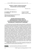 Дано описание технологии гибкого профессионально ориентированного переводческого чтения. В качестве исходных понятий принимаются «смысловое решение», «речевой поступок», «речедеятельностная единица письменного технического перевода» и др. Важной методологической основной выступает теория В. Д. Шадрикова о сложной структуре целеполагания. Обоснована необходимость включения во все упражнения и коммуникативно-речевые задачи целого, связного, осмысленного текста и его единиц. Сформулированы условия овладения знаниями, операциями и речевыми навыками. Для раскрытия специфики переводческого осмысления и понимания авторами раскрывается содержание ряда принципиальных вопросов о видах смысловых связей, роли информативного чтения как общения-диалога, последовательности осуществления речевых операций, речевых действий и речевой деятельности чтения во взаимосвязи с речевой деятельностью репродуктивного и продуктивного, творческого письма. В качестве ведущего типа структуры программы смыслового содержания при этом предлагается денотатная структура. Подробно изложена последовательность шагов, составляющих технологию обучения профессиональному переводческому чтению, которые предполагают выявление, осмысление, понимание всех мыслей каждого фрагмента, в своей совокупности образующих программу его смыслового содержания. В ходе исследования получила подтверждение гипотеза о том, что представленный способ выявления и фиксации лексем, объединенных по смыслу в денотатах, является наиболее эффективным способом на начальном этапе по сравнению со способом выявления, осмысления и формирования тема-рематических единств. Эффективность предложенной технологии обучения выявлению и пониманию всех смысловых связей в речевых фрагментах обусловлена строгой последовательностью и интеграцией разнохарактерных операций: речевых лексических операций в процессе действий информативного чтения и письма-фиксации, речемыслительных операций выявления сочетаемостно-синтагматических отношений между словами, речемыслительных операций думания и выделения слов в группу «тема» и «рема», лексико-морфологических операций и др.